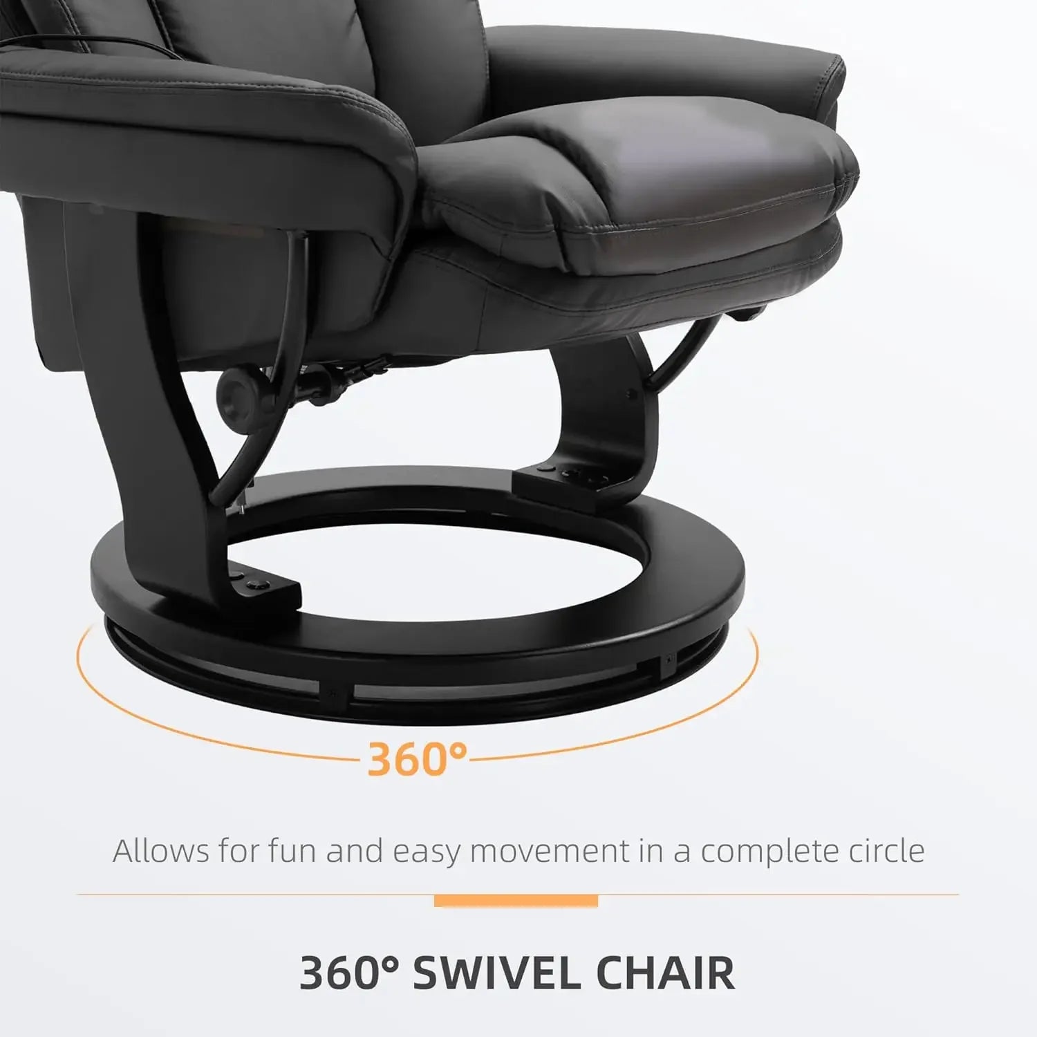 PU Leather Massage Recliner Chair with Ottoman 10 Point Vibration Swiveling Armchair, Black