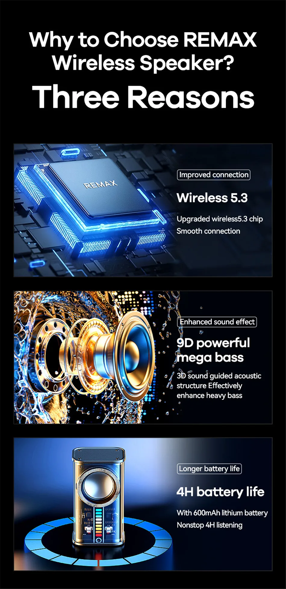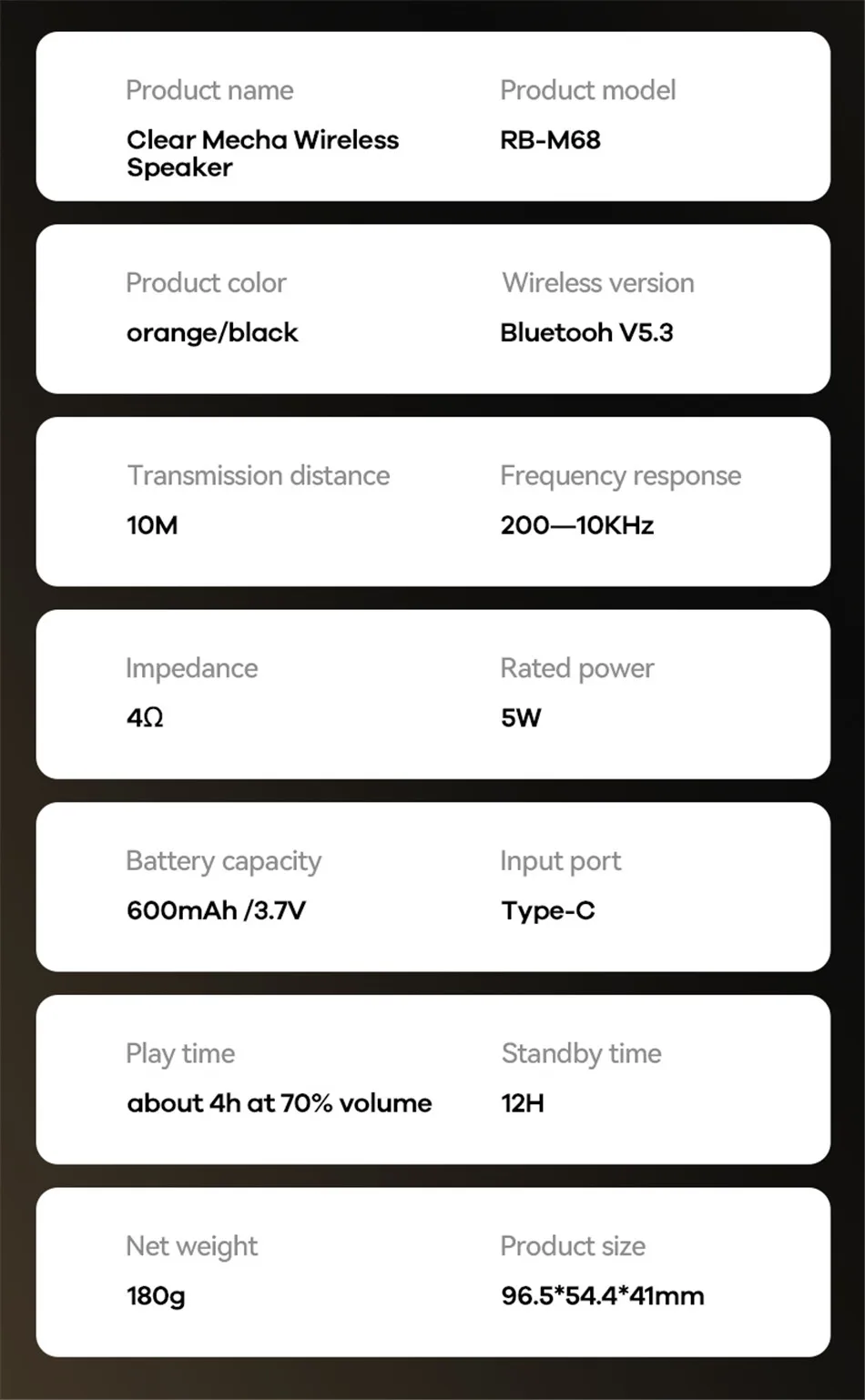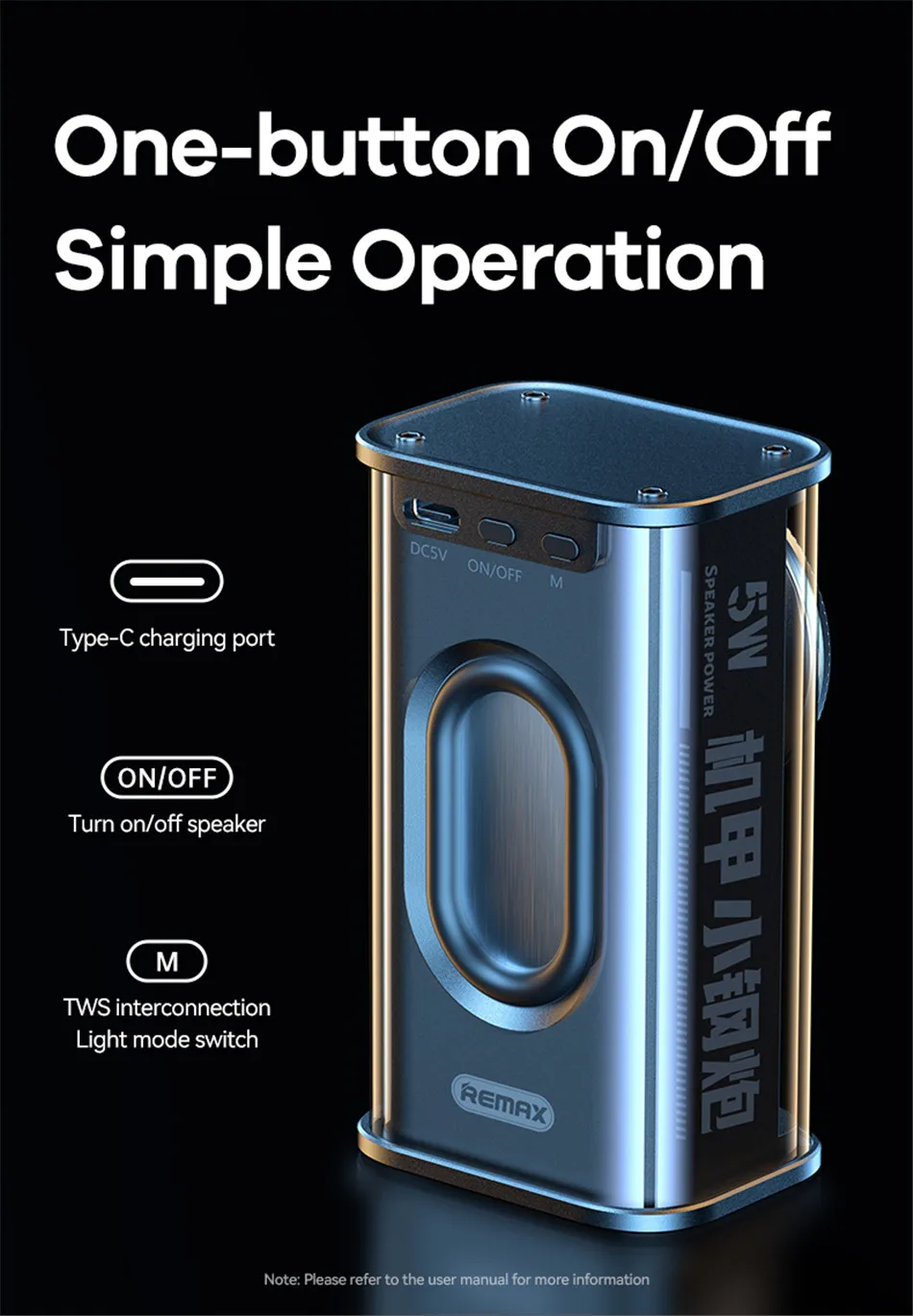 Remax RB-M68 Clear Mecha Wireless Speaker Bluetooth 5.3 TWS interconnection Super Bass 2-speaker Connection