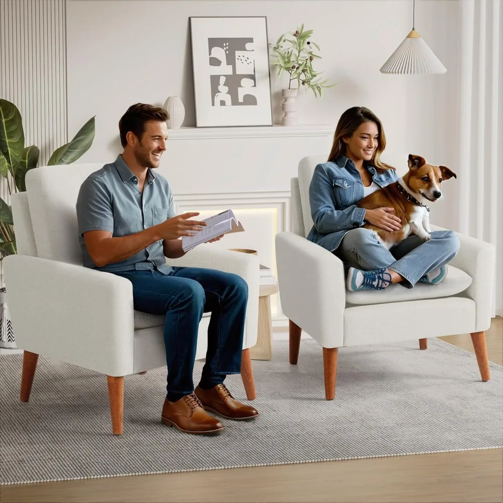 Set of 2 Mid-Century Modern Fabric Accent Chair Upholstered Lounge Armchair