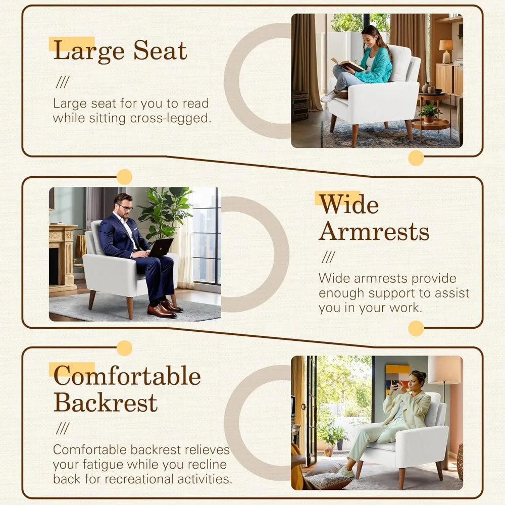 - Premium Build: Crafted with a sturdy solid wood frame, our chair ensures stability and durability, supporting up to 420lbs. The combination of high-density sponge and breathable linen fabric cover provides both comfort and a skin-friendly experience.