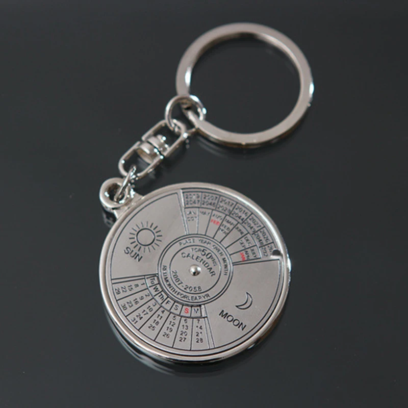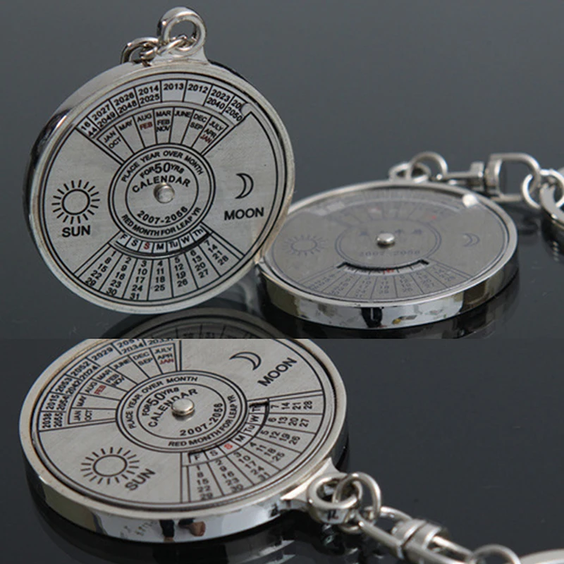 Silver Color 50 Years Super Perpetual Calendar Key Chains Rings Astrology Keychains Car Bag Pendant Keyring Holder Jewelry Gift