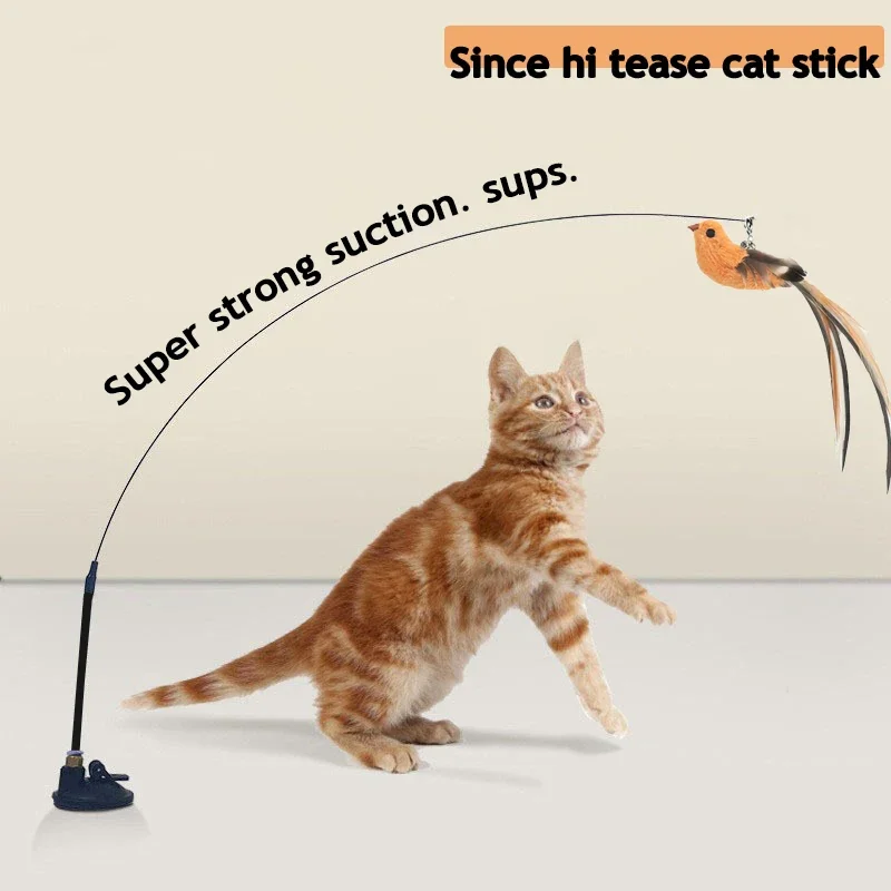 Simulated Bird Cat Toys Upgraded Epoxy Sucker Steel Wire Long Rod Feather Cat Teasing Stick Cat Self Hi No Harmful Ingredients