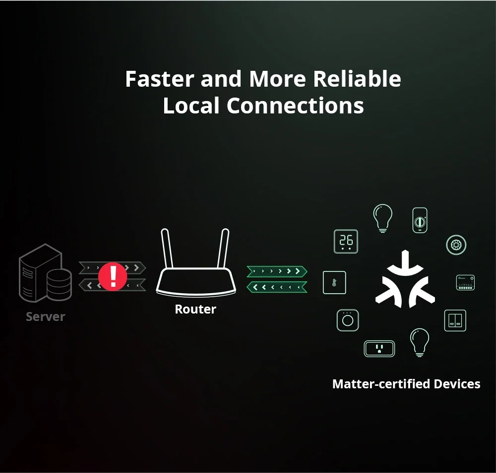 Matter-certified devices support local communication in the home network, even if there is no server connection, all matter-certified devices in your local area network still work normally.