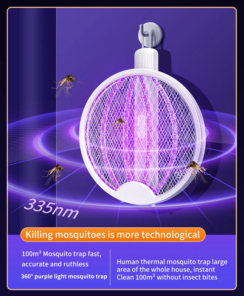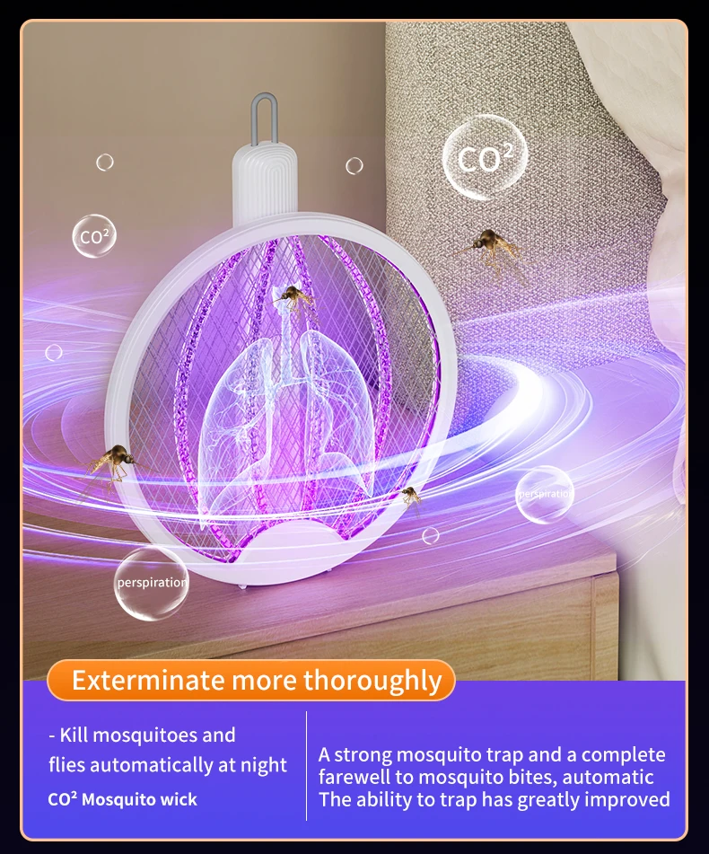 Tree-in-one Foldable Electric Mosquito Killer Fly Swatter Trap Light Wave Mosquito Luring Home Wall-Mounted Mosquito Killing