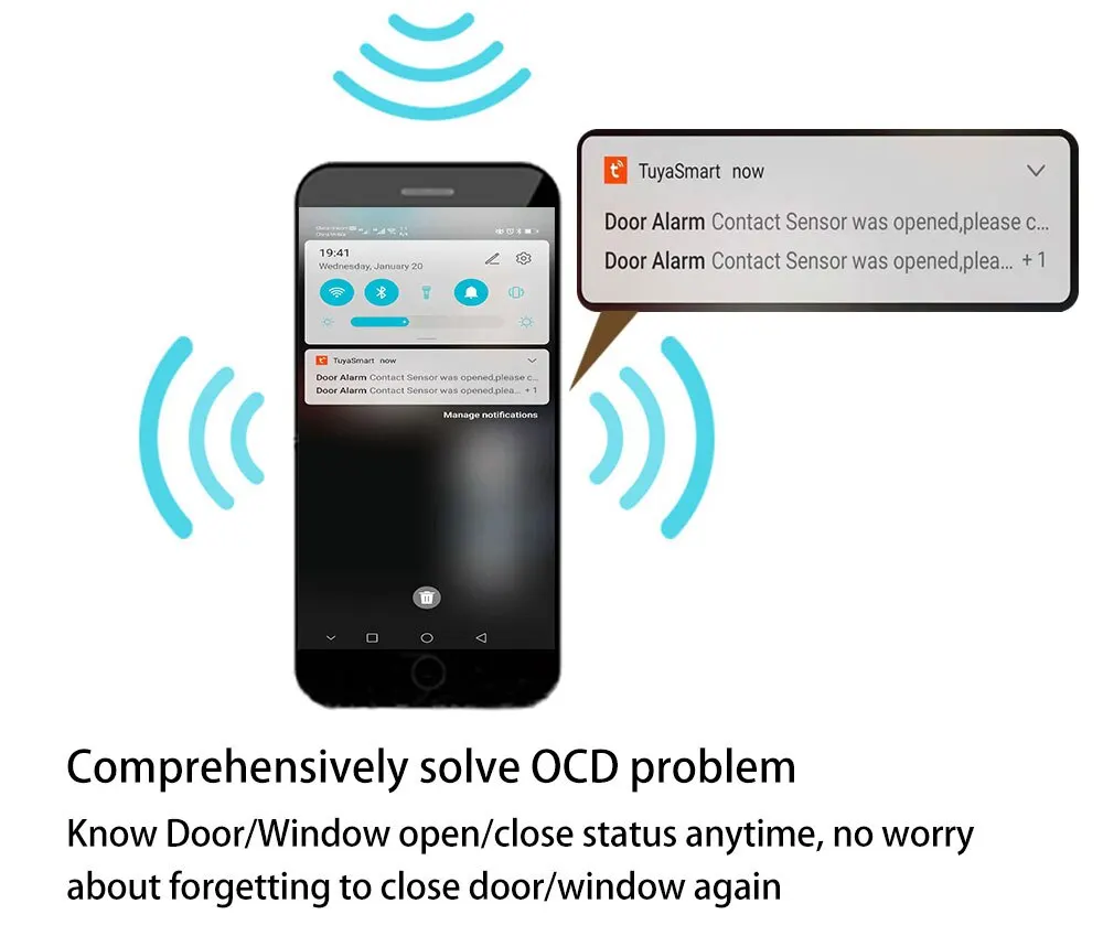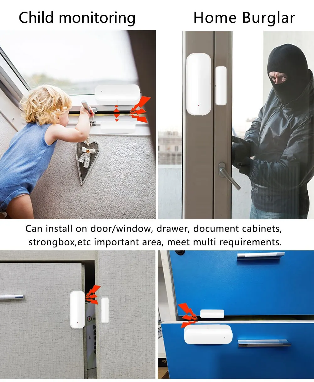 Simply use your voice to control the connected devices by Alexa or Google Home. It can also perform auto control together with other smart devices which are compatible with Smart Life. Convenient for you to detect your doors, windows, cabinets, drawers or anywhere you want to notified when it is opened or closed.