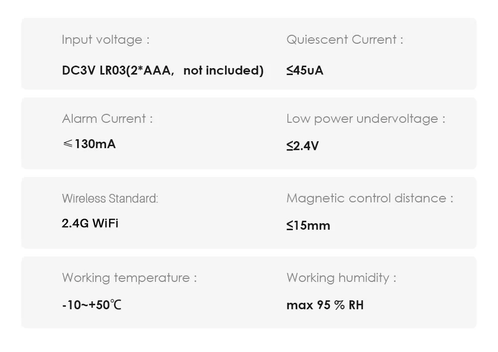 -- WiFi door sensor only needs to connect APP through WiFi router
