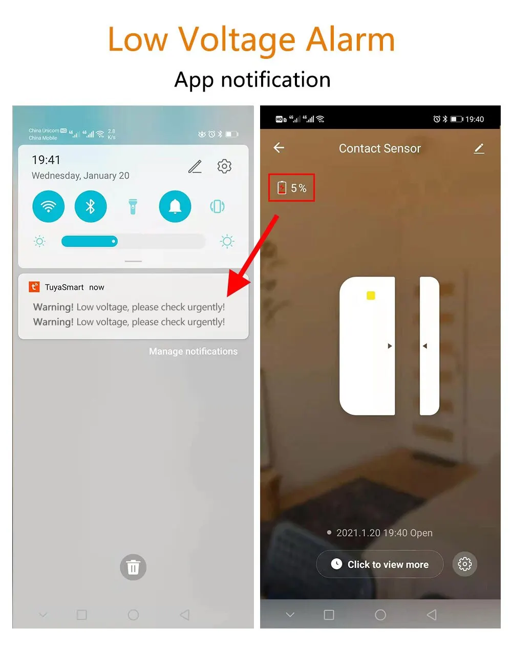 • App Control :The Tuya Smart Door Sensor can be controlled through the Smart Life APP, allowing you to monitor and manage your home security system remotely.