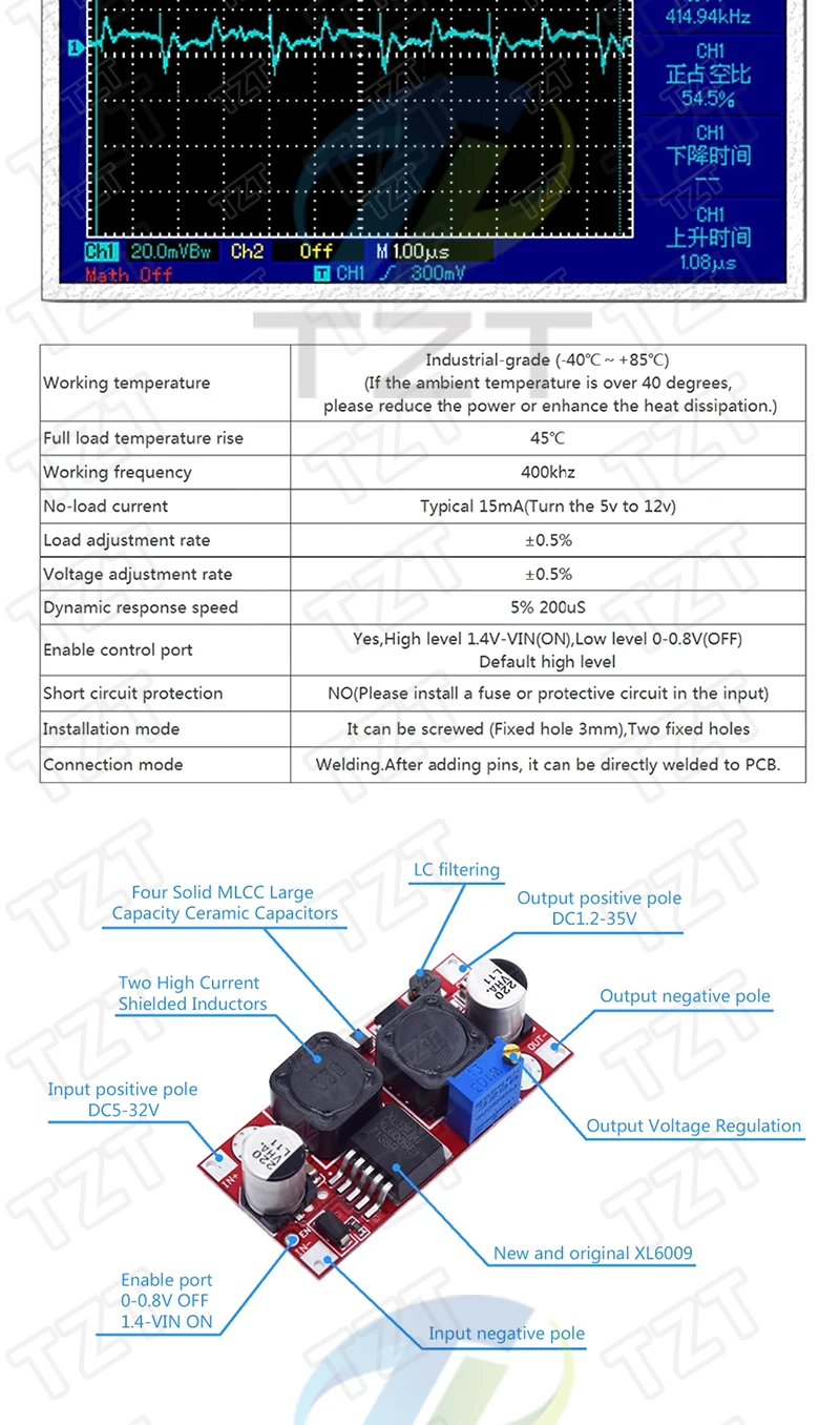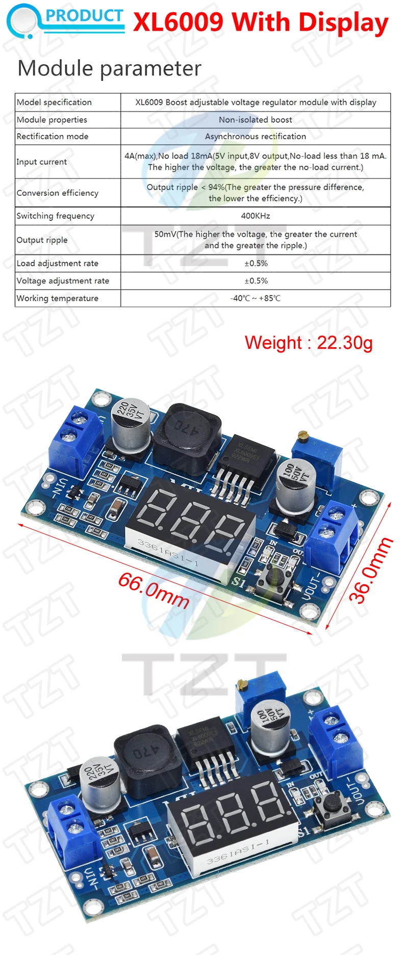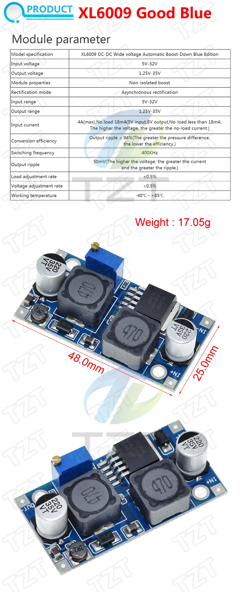 TZT 1PCS Boost Buck DC-DC Adjustable Step Up Converter XL6009 Power Supply Module 20W 4A 5-32V to 1.2-35V