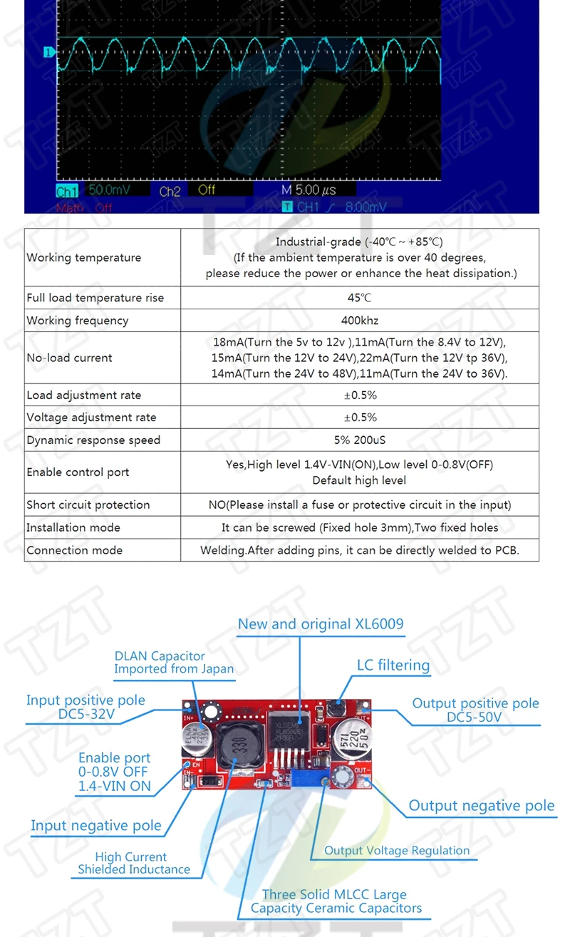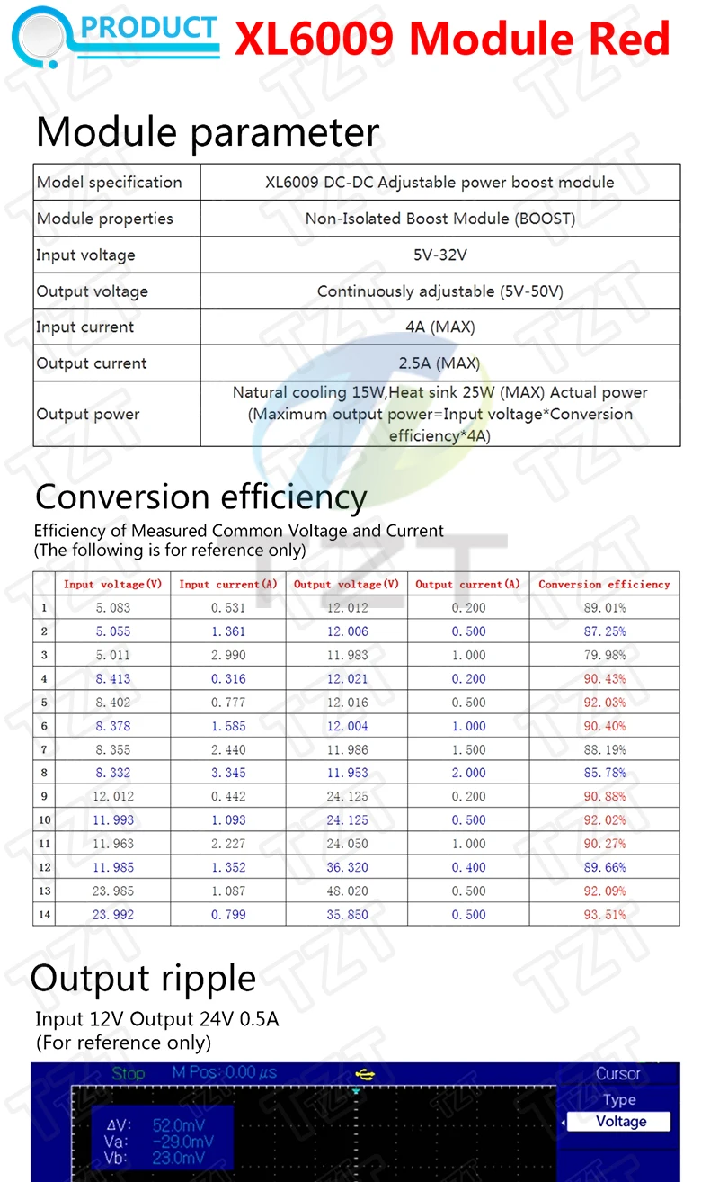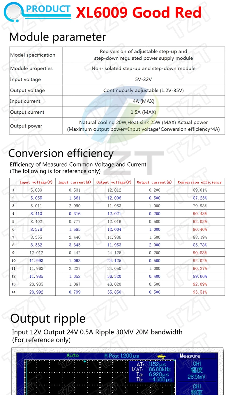 TZT 1PCS Boost Buck DC-DC Adjustable Step Up Converter XL6009 Power Supply Module 20W 4A 5-32V to 1.2-35V