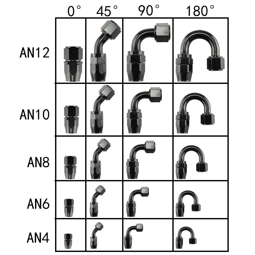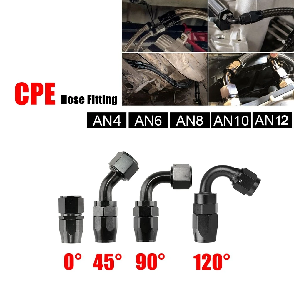 Universal AN4/AN6/AN8/AN10/AN12 Straight 0°/45°/90°/120° Degree Oil Fuel Swivel Hose End Fitting CPE Oil Hose End Adaptor Black
