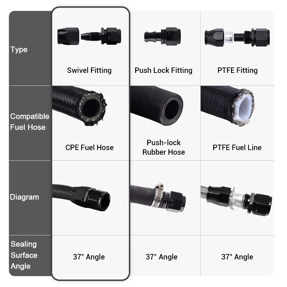 Apply to all oil/ fuel/ water/ fluid/ air/gas/coolant line, cars with turbo modification, installation of the oil cooling radiator connections. Can't use toE85.Work with all CPE stainless braided and nylon braided hoses.