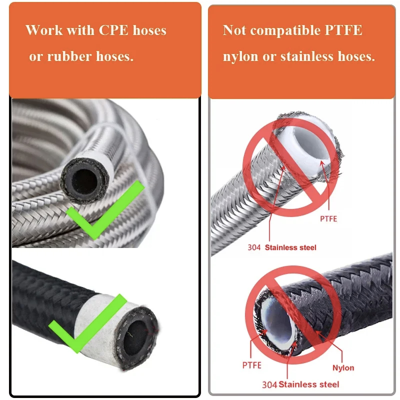 Not compatible with PTFE hoses/ rubber hoses.