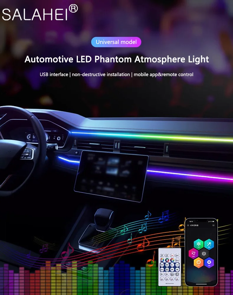 USB 64 Colors Acrylic Strips LED Atmosphere Light 110cm Full Color RGB Lamps Car Interior Hidden App Remote Control Ambient Lamp