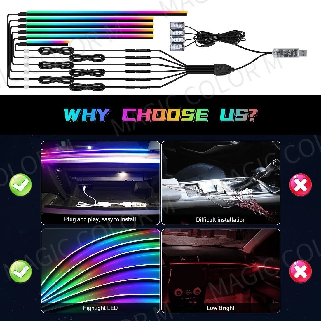 Special Features: Multifunctional car ambient light APP Bluetooth control remote USB