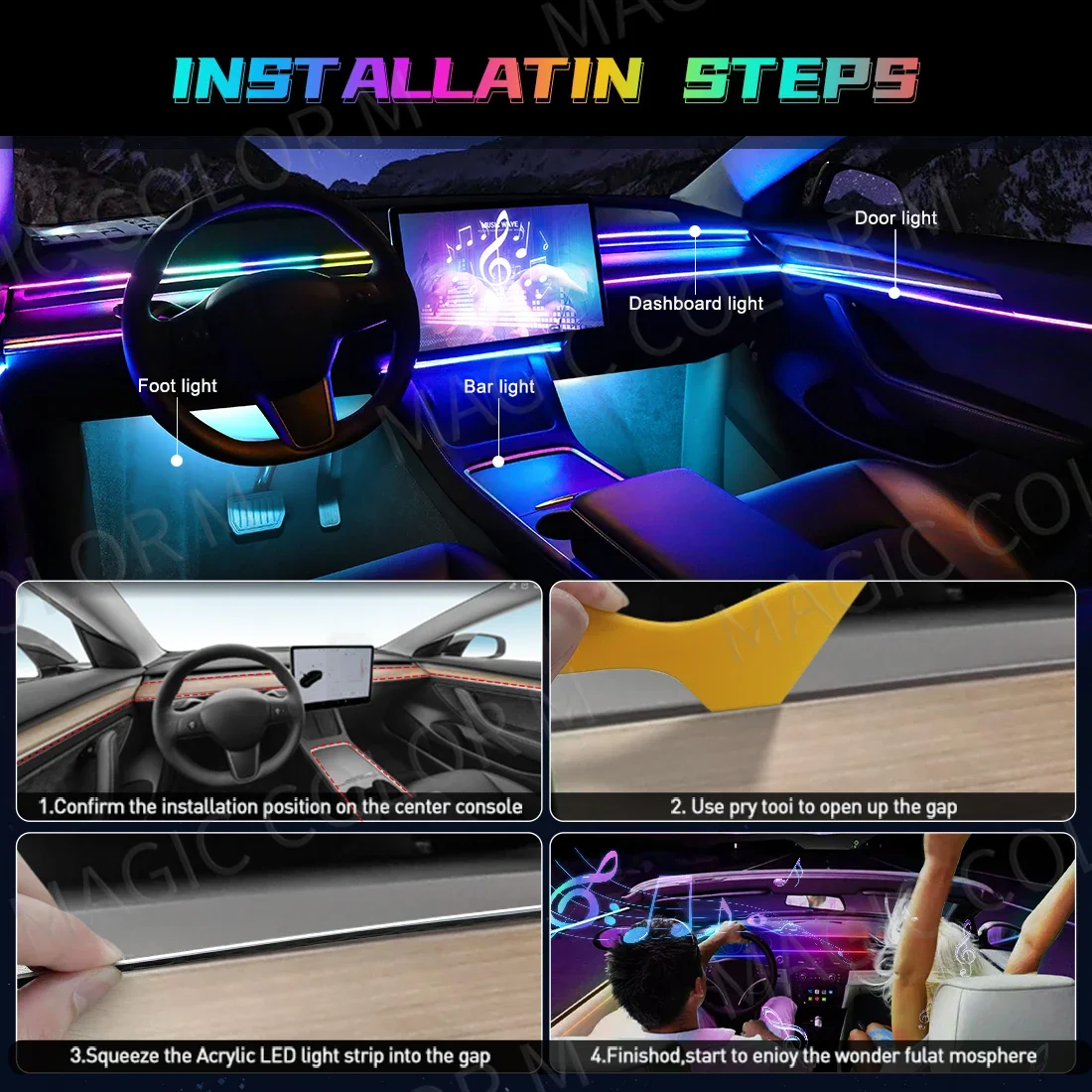 Vgetting For Tesla Model 3 Y S X Car Ambient Lights 10 in 1 Footwell Universal RGB Atmosphere Lamps USB APP Remote Cigar Lighter