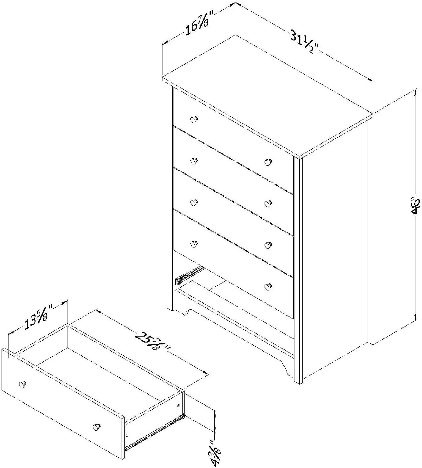 This Vito Collection 5-drawer dresser has a timeless look and blends in easily with any decor. The contemporary lines are accentuated by the decorative kick plate, and wooden knobs add character and value to the furniture. Featuring metal drawer slides that include dampers and stops, this dresser is perfect for any family members of all ages.