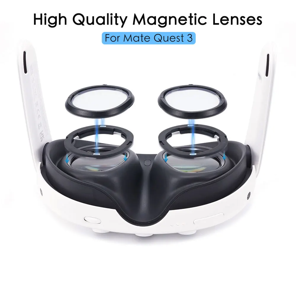 * Easy to use: The design of the prescription lenses enables swift installation which can be done in less than 5 seconds. The product comes with a magnetic mount and magnetic lenses. First put the mount on the headset's lens, then simply put the lenses onto the magnetic mount, then lenses will stay on the mount firmly. When sharing the headset among friends and family, simply take off the lenses at ease and the Quest3 headset are prescription-free.