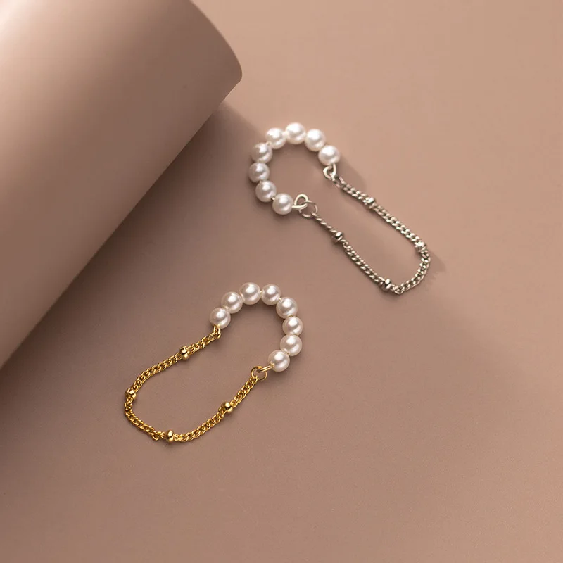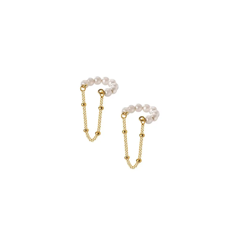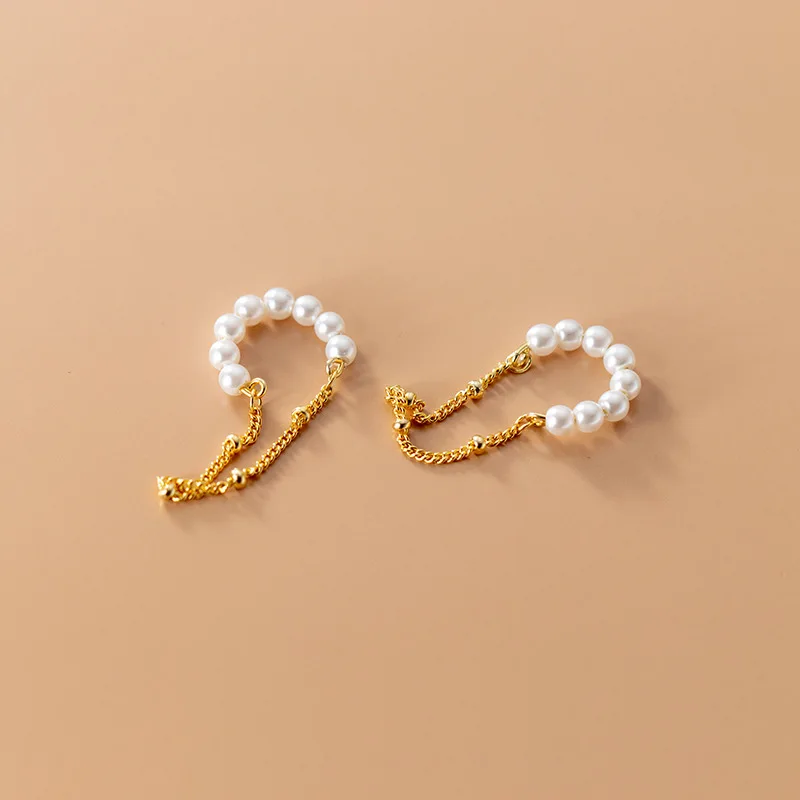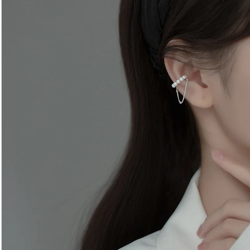 WANTME 925 Sterling Silver Fashion Unique Pearl Chain Ear Clip On Earrings for Women Hip Hop Without Piercing Jewelry Ear Cuff