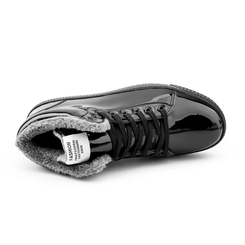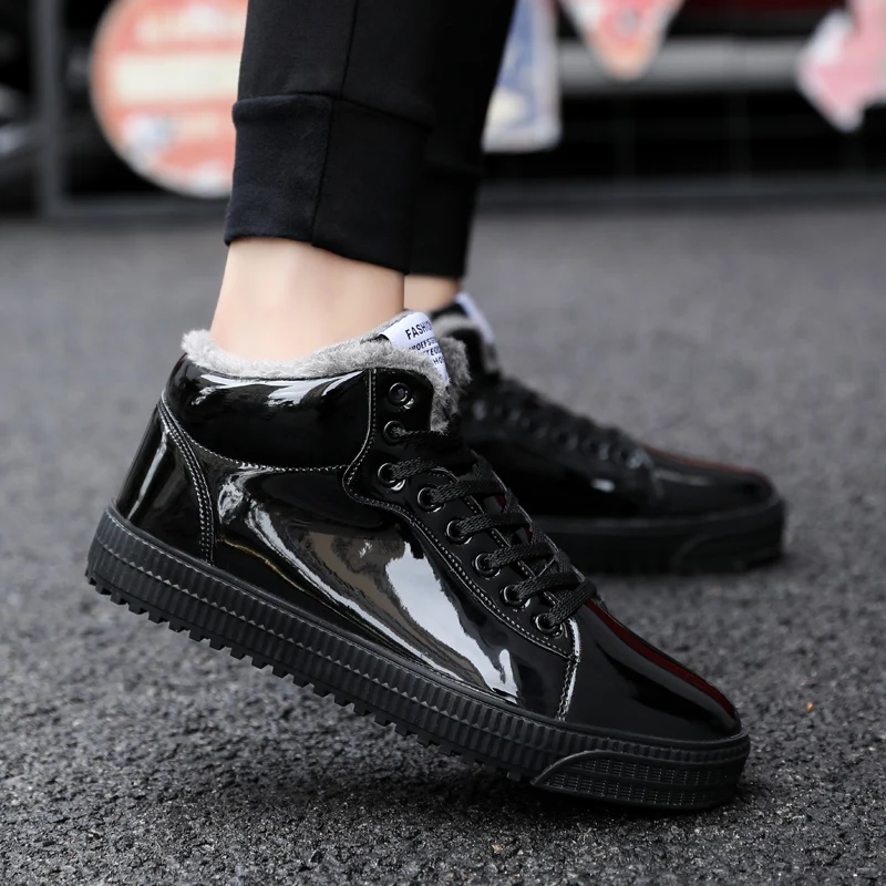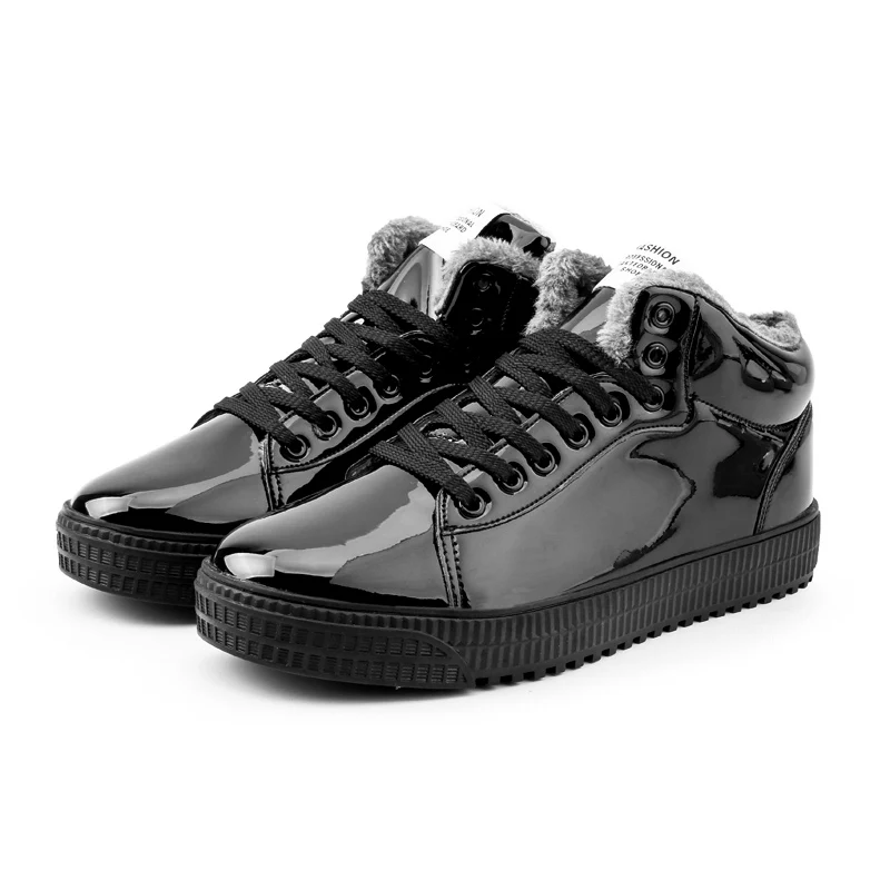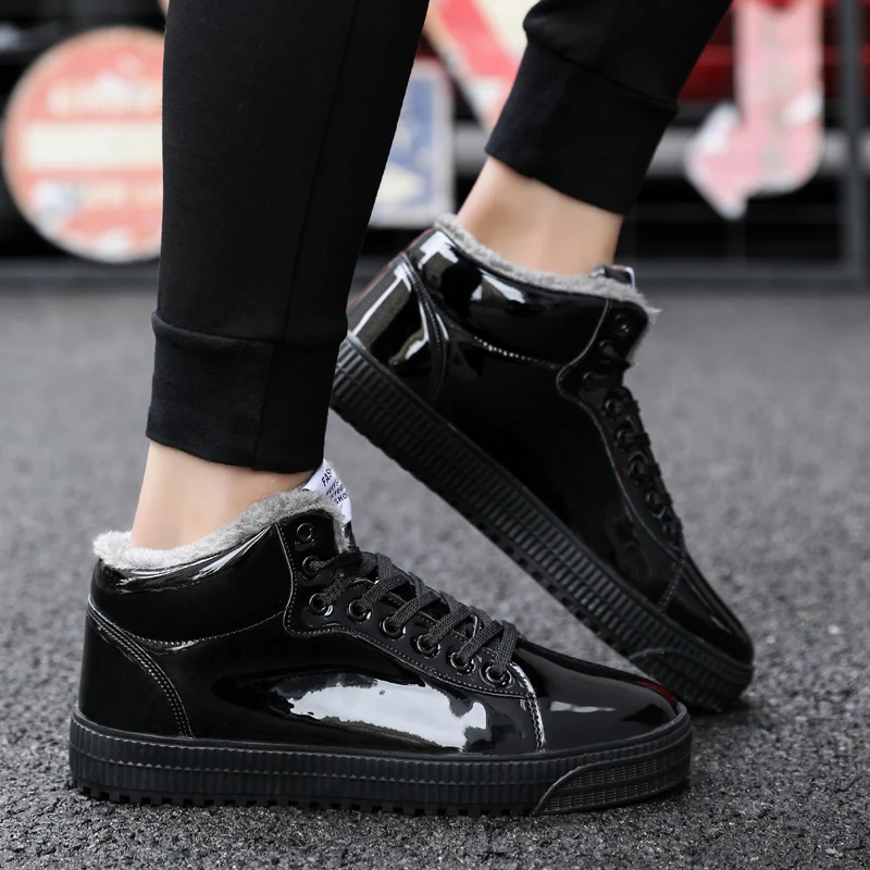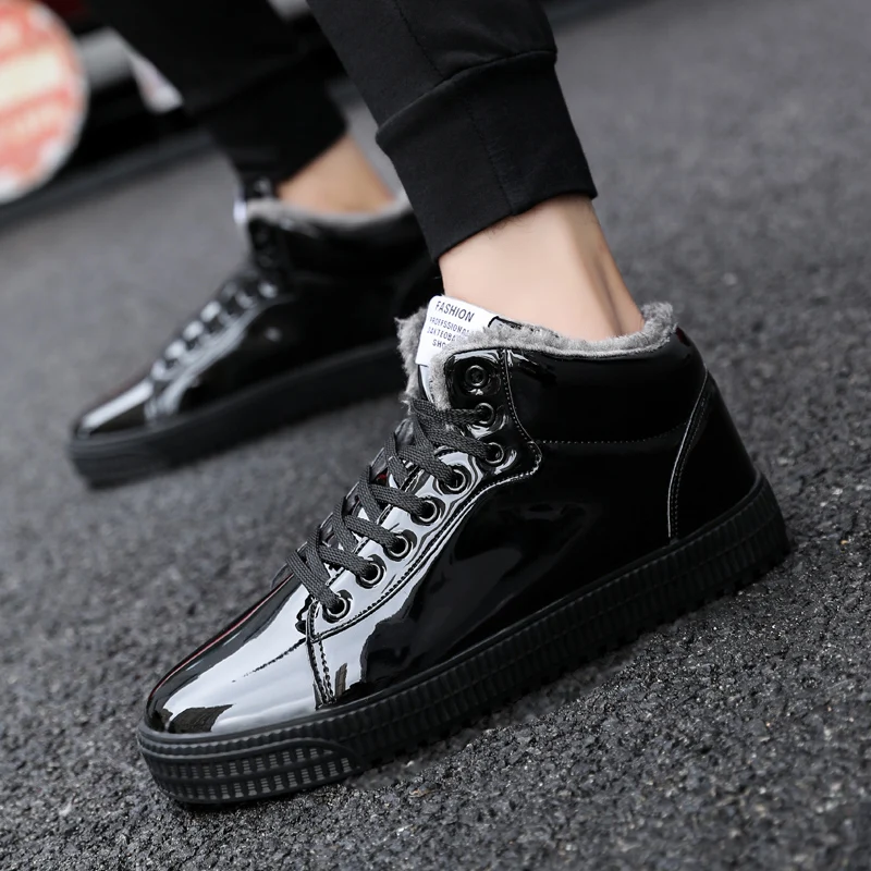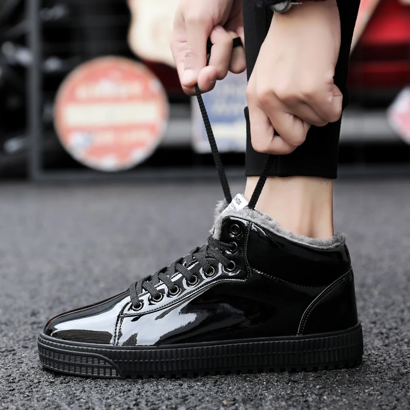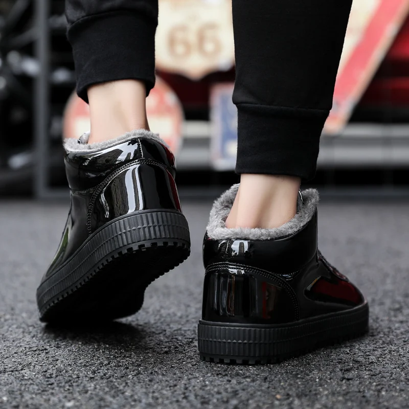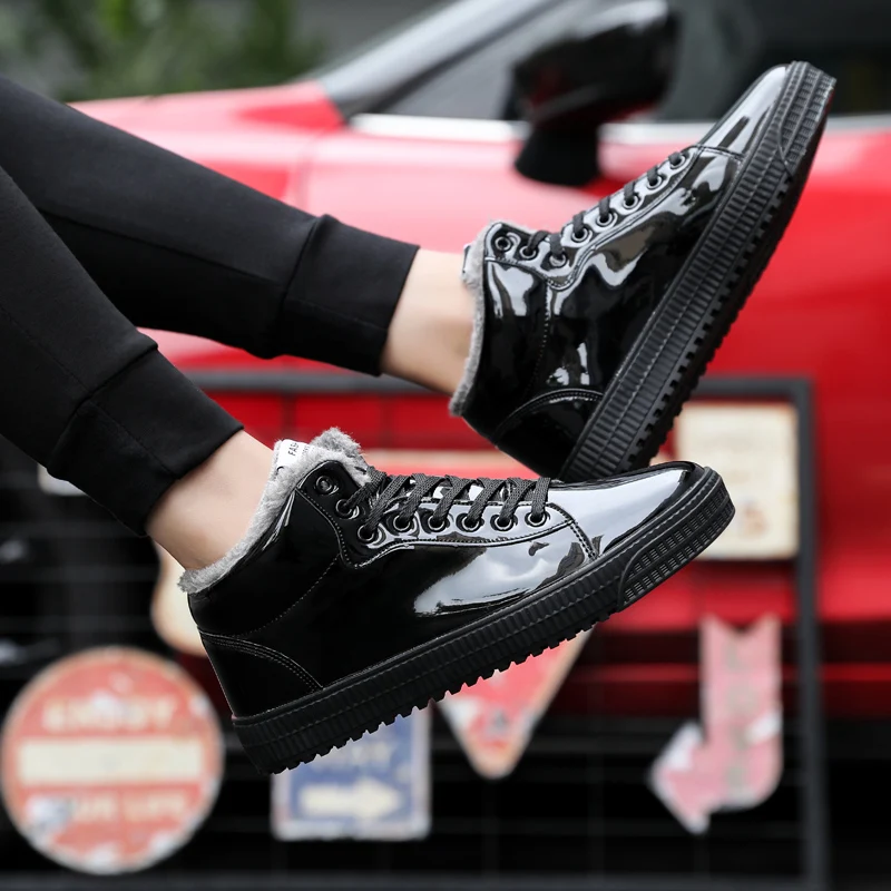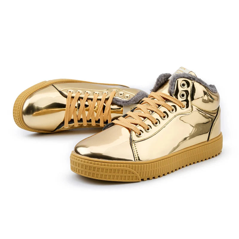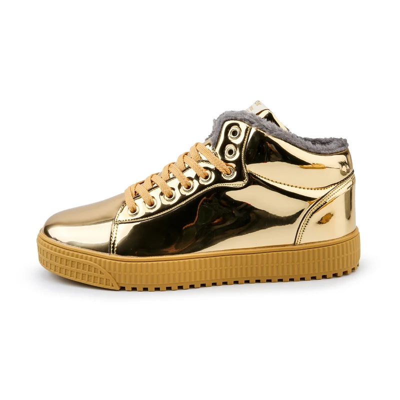 Warm Men Shoes Patent Leather Sneakers High Tops Gold Silver Hip Hop Boots Plush Winter Shoes Fashion Shoes Flats Size 47