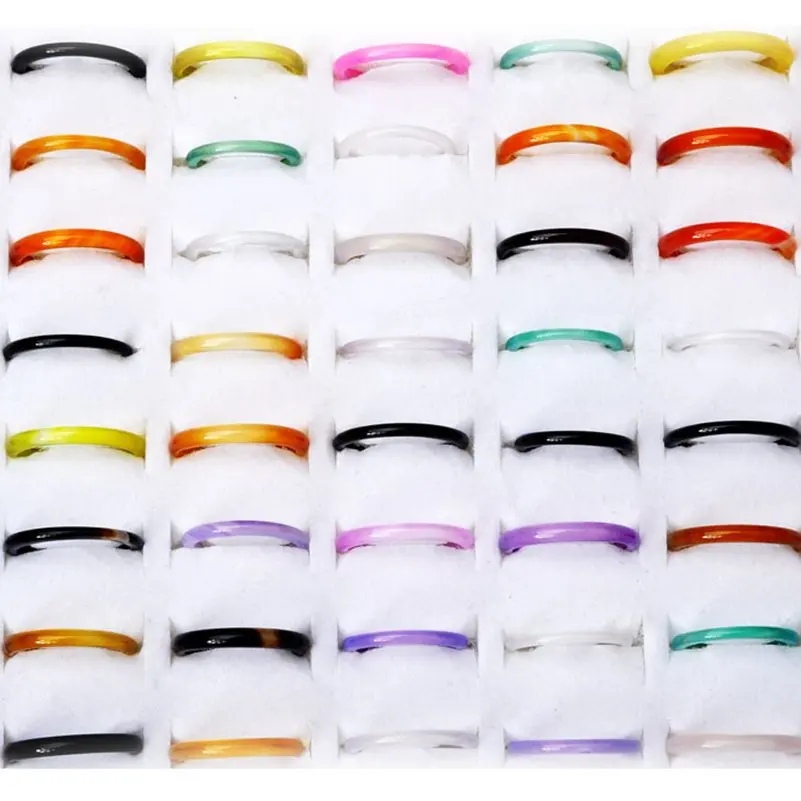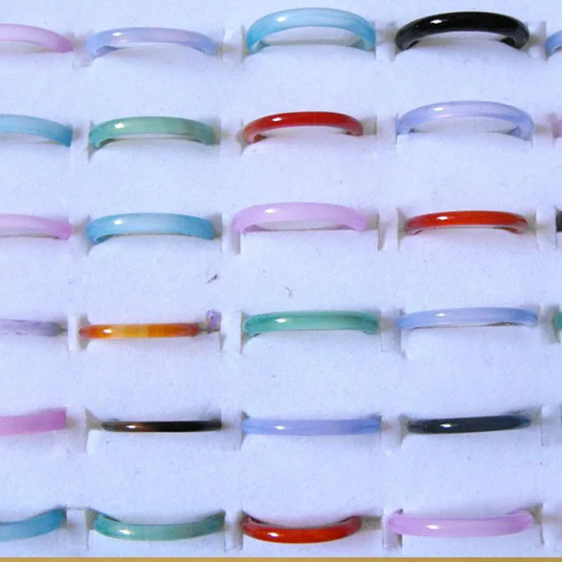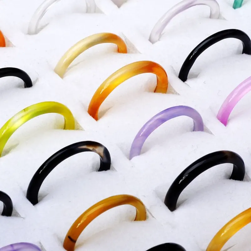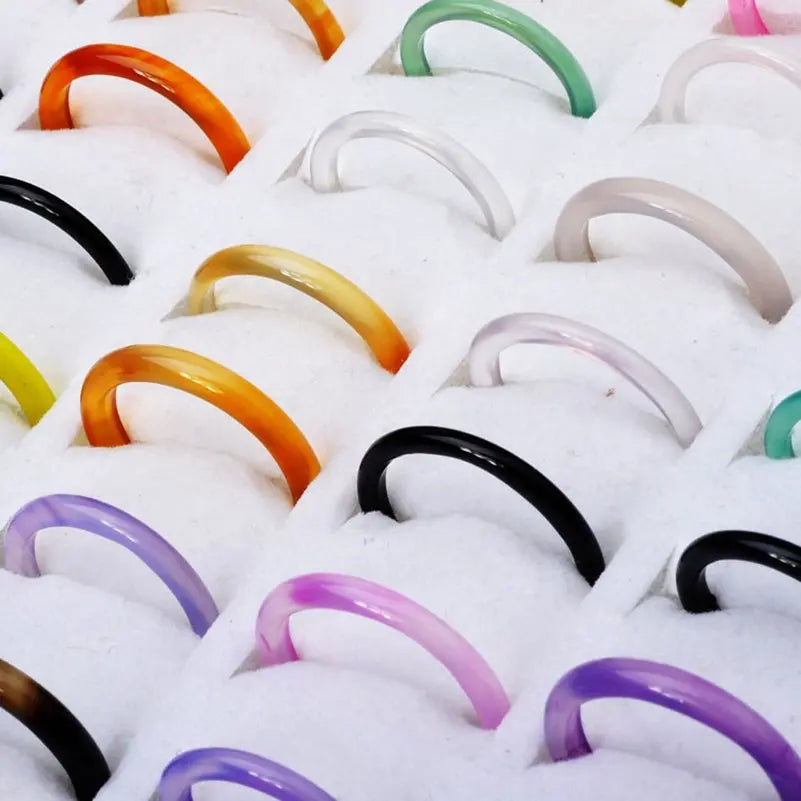 Wholesale 10pcs/lot Colourful Thin Agates Natural Stone Rings for Women Geometric Round Finger Rings Jewelry Gifts