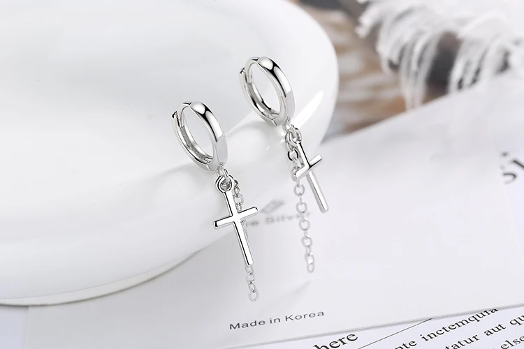 Wholesale S925 Sterling Silver Women Men Fashion Jewelry High Quality Cross Chain Long Tassel Simple Hoop Drop Earrings Gift