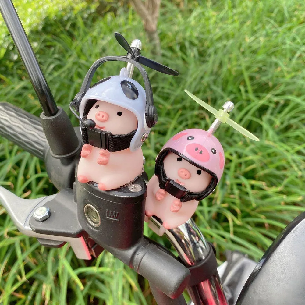Wind Broken Car Cute Little Pink Pig with Helmet Propeller Wind-breaking Duck Road Bike Motor Helmet Riding Cycling Car Decor