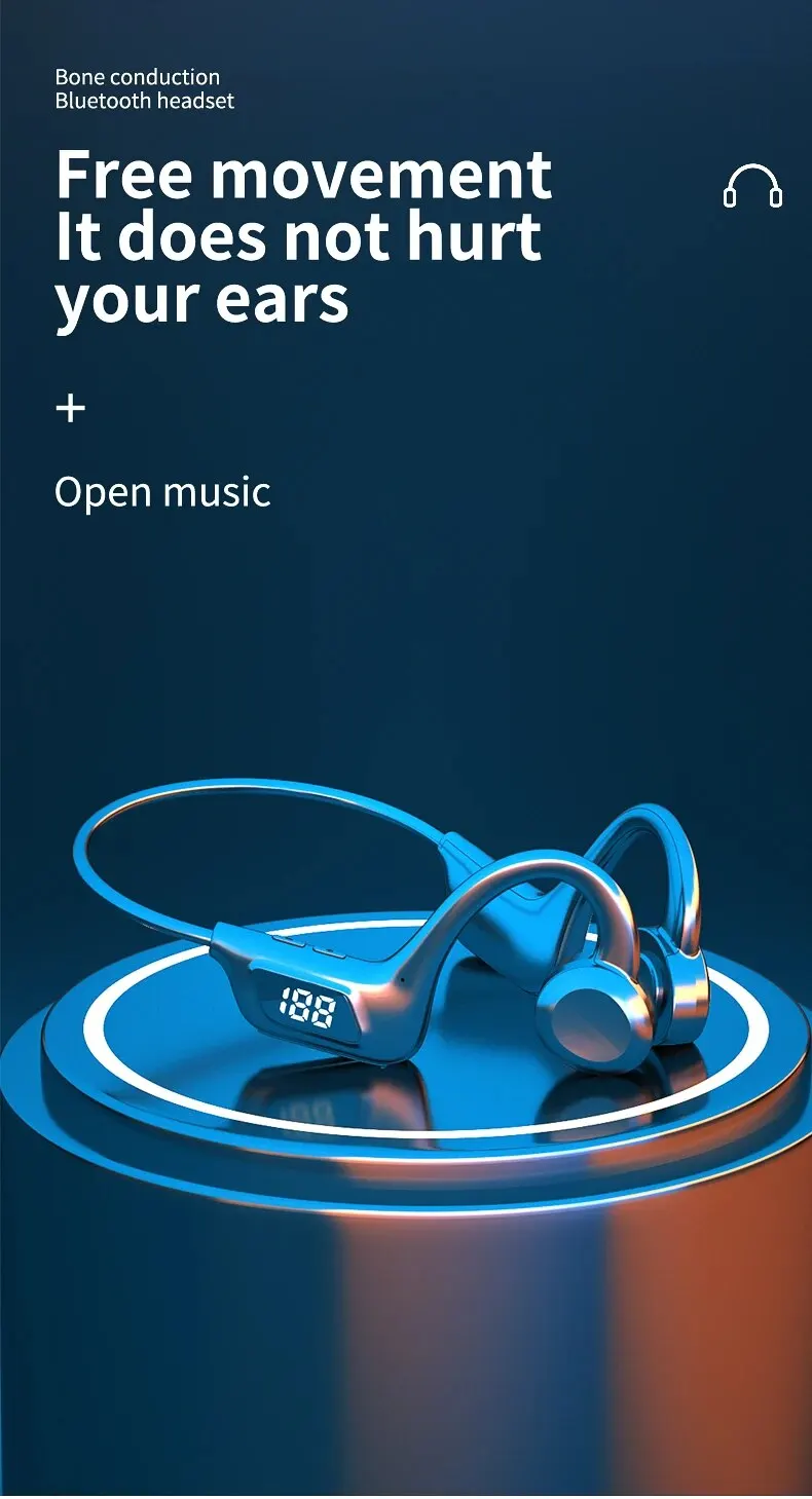 Wireless BT Q33Pro open-back earphones, neck-mounted air conduction sports Headset, LED power display, TF card can be inserted
