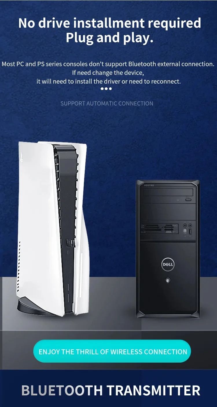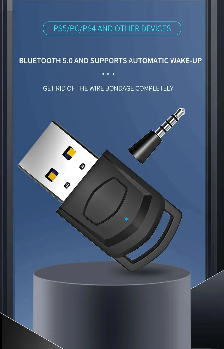 Wireless Game Audio Headphone Adapter Receiver for PS5 PS4 Game Console PC Headset Bluetooth 5.0 Audio Transmitter