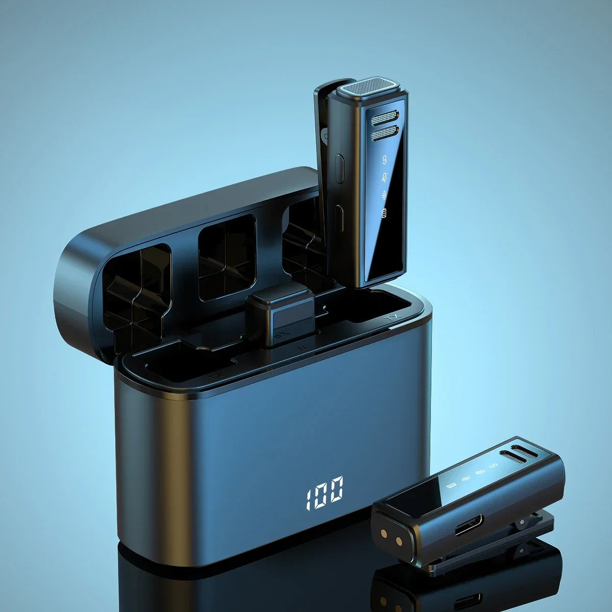 Wireless Lavalier Microphone Mini Portable Noise Reduction Audio Recording Microphone For iPhone Android With Charging Box