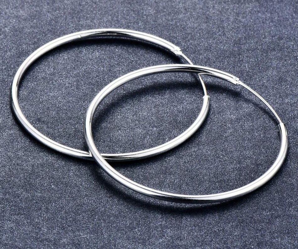 Women 100% 925 sterling silver Hoop Earring Round Circle Loop Gifts Box Packing Simple Silver Hoop Earrings Piercing