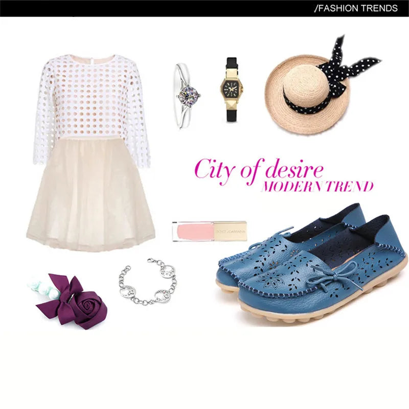Women's Fashion Summer Footwear of Genuine Leather Sweet Loafers Flat Shoes with Round Toe for Soft Nurse Casual Working Slip On