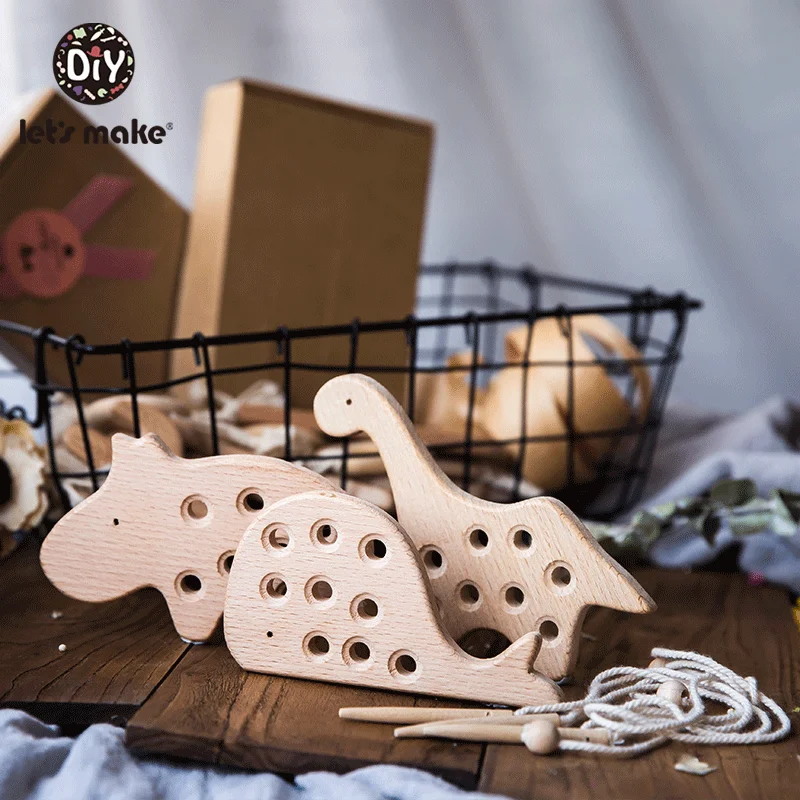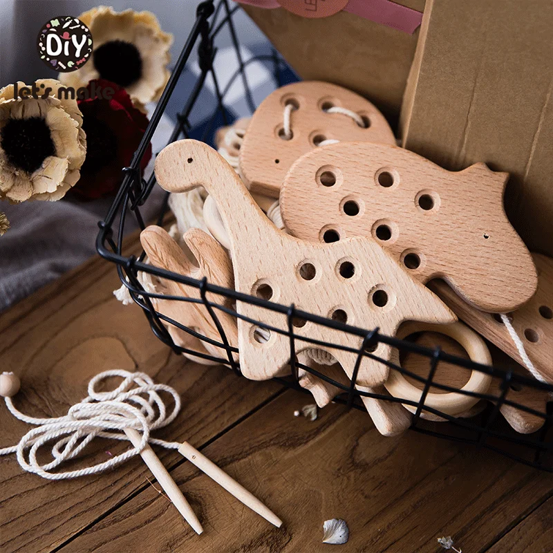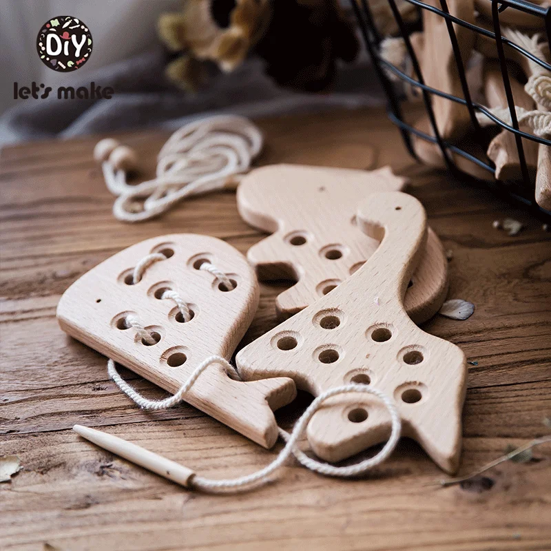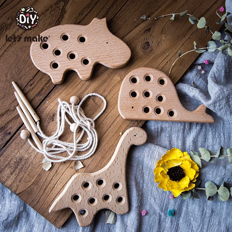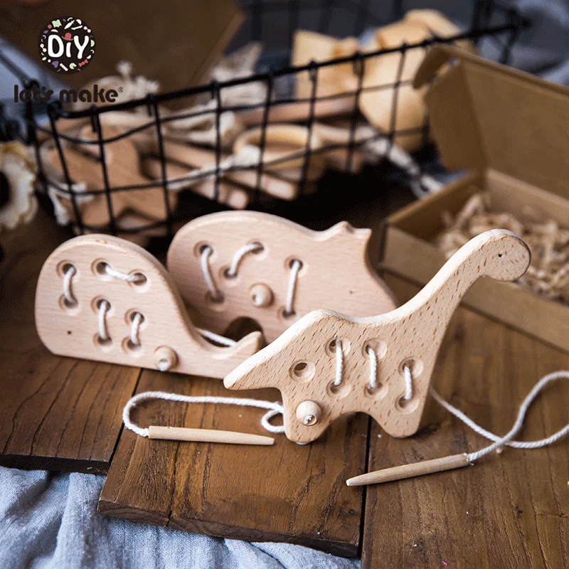 Wooden Kindergarten Mouse Threading Board Lacing Beech Wooden Sewing Toys Dinosaur Button Beaded Blocks For Boys Girls Products