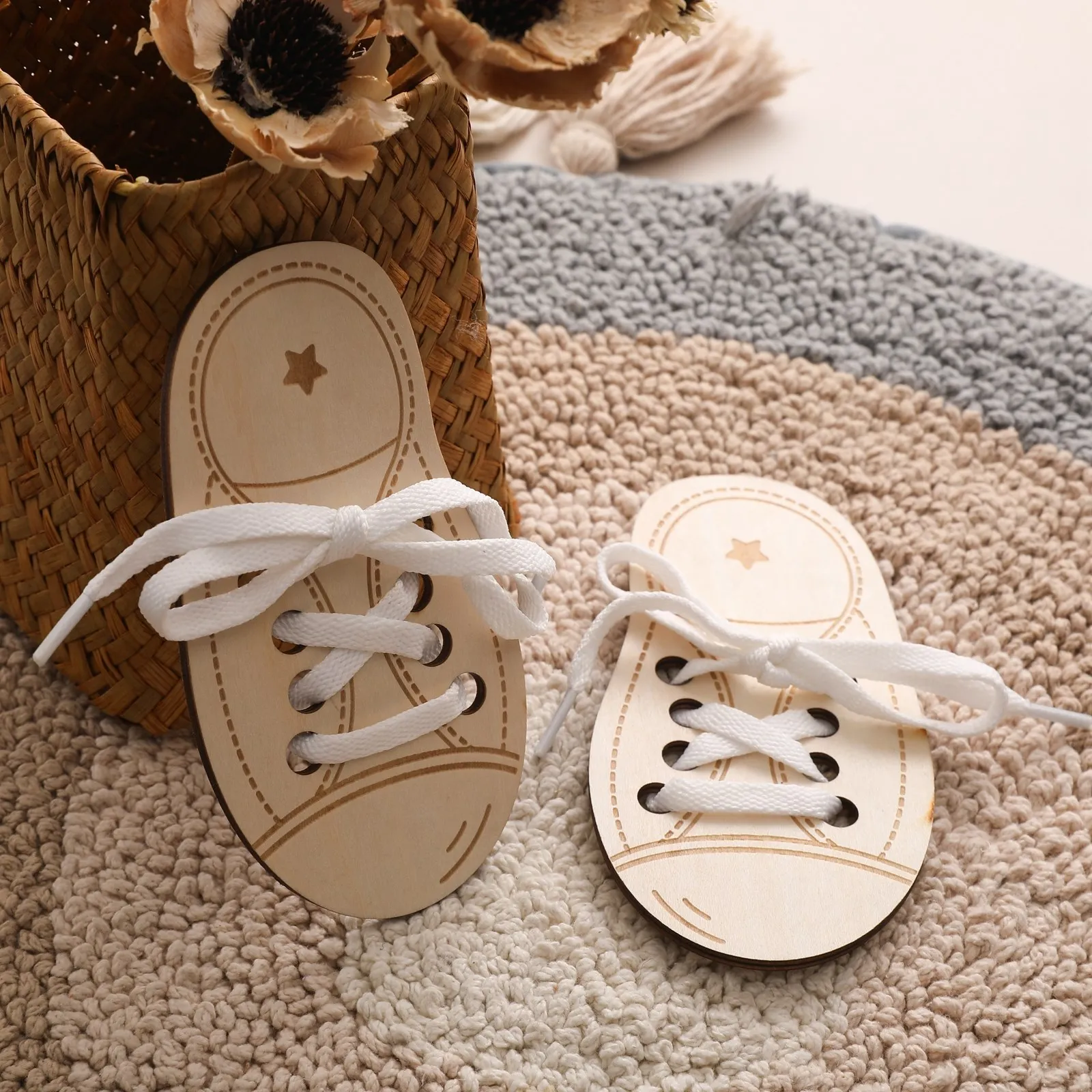 Wooden Lacing Shoe Toy Learn to Tie Laces Creative Threading Toys Practice Tying Shoelaces Boards Educational Montessori Toys