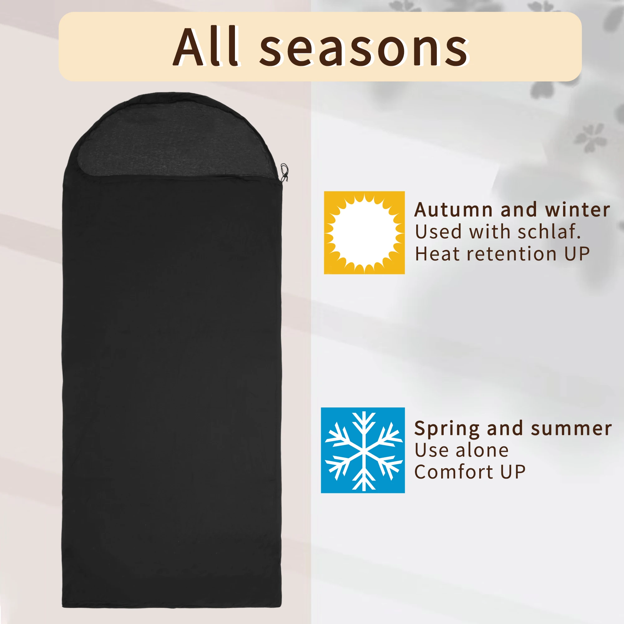 Specially designed for travel sleeping bags, easy to carry, with pockets for pillow inserts so you can stretch your legs as you like.