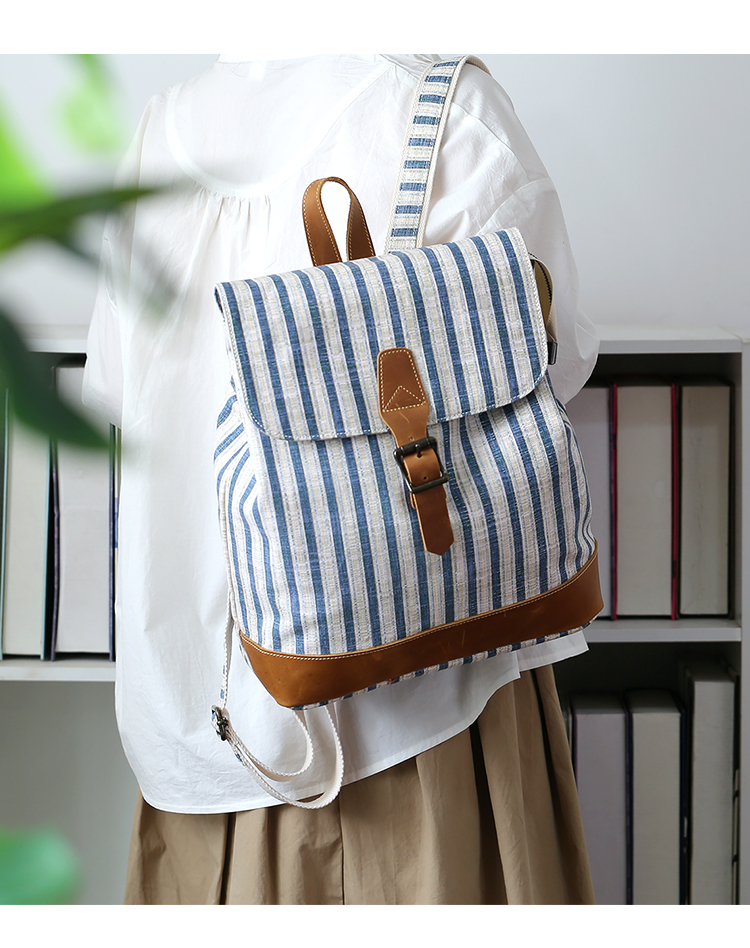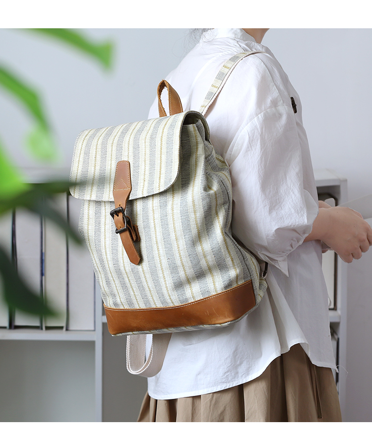 Xiao Sheng Youmi Casual Stripes Canvas Women's Backpack