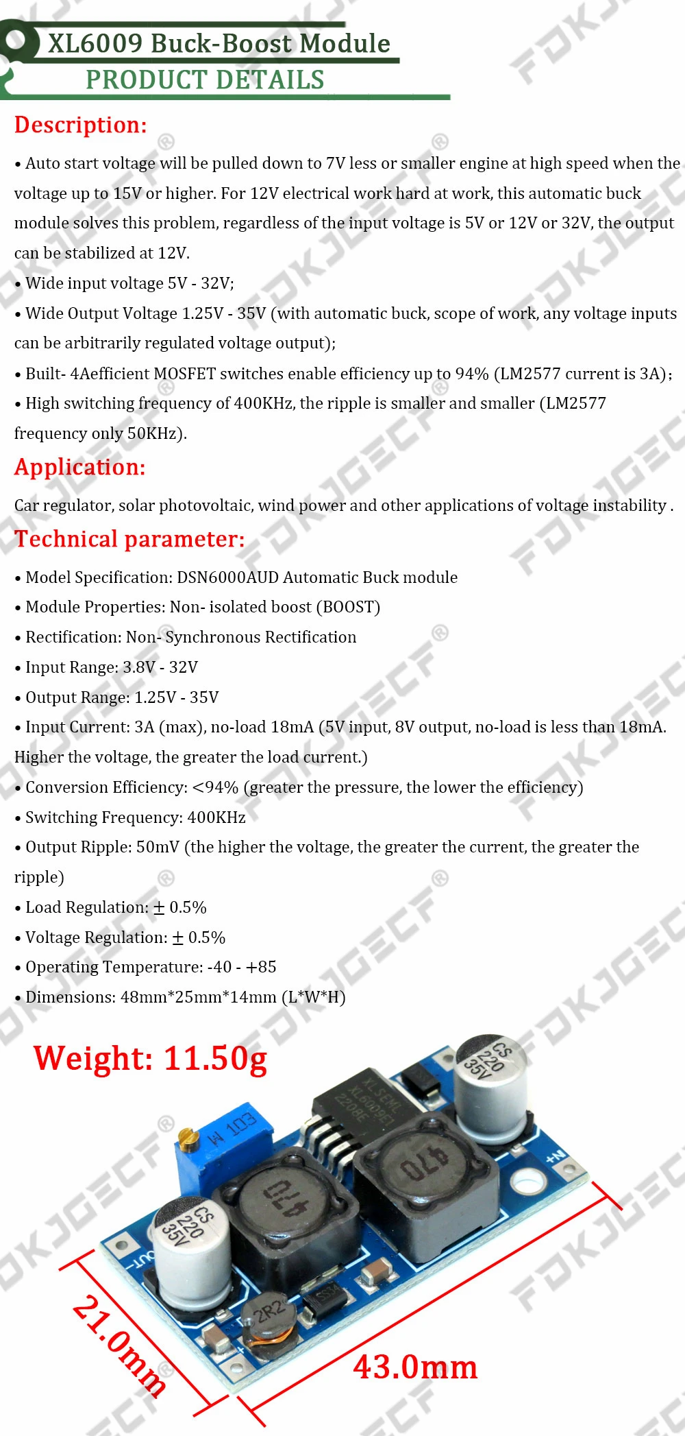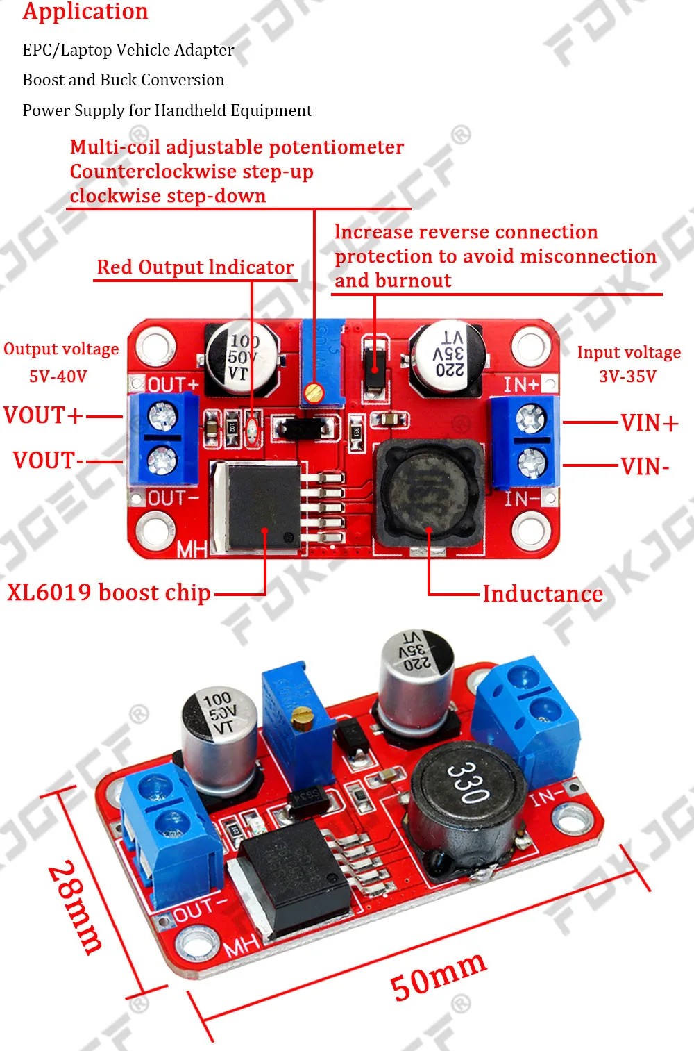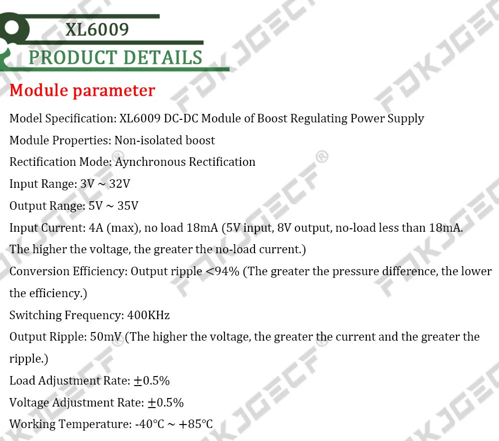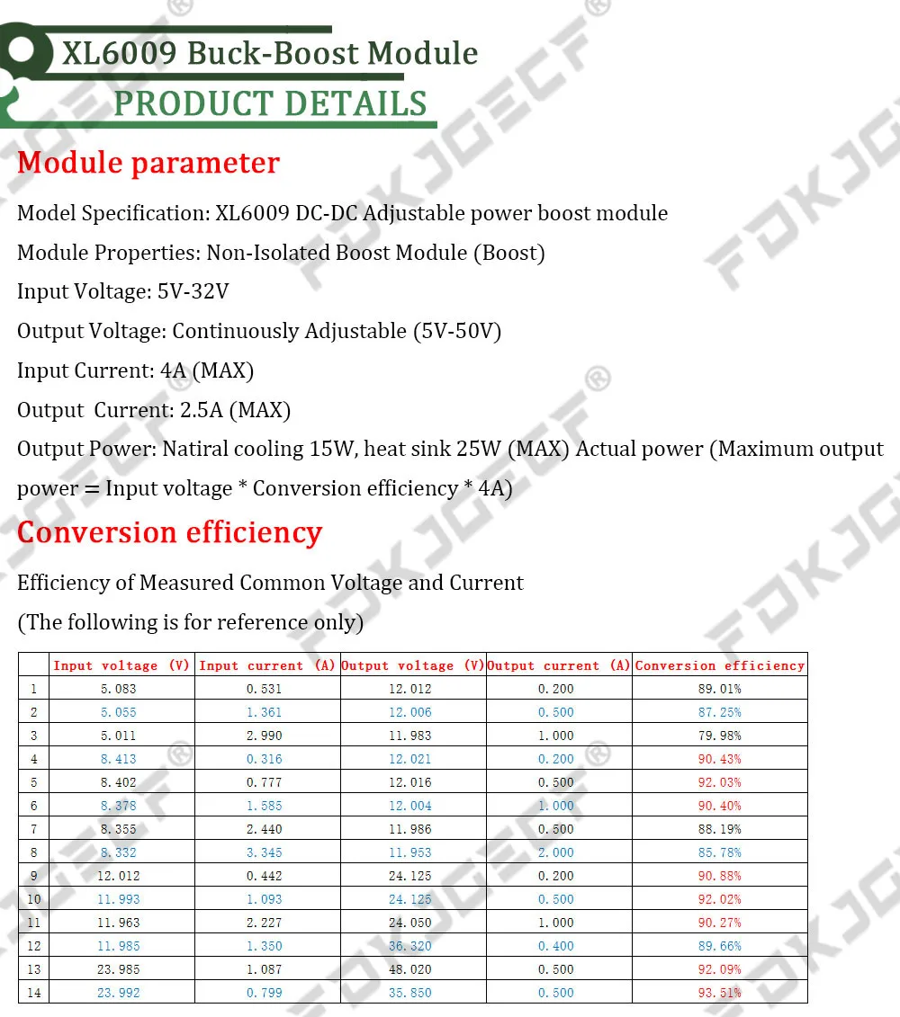 XL6009 4A Boost Converter Step Up Adjustable 15W 5-32V to 5-50V DC-DC Power Supply Module High Performance Low Ripple