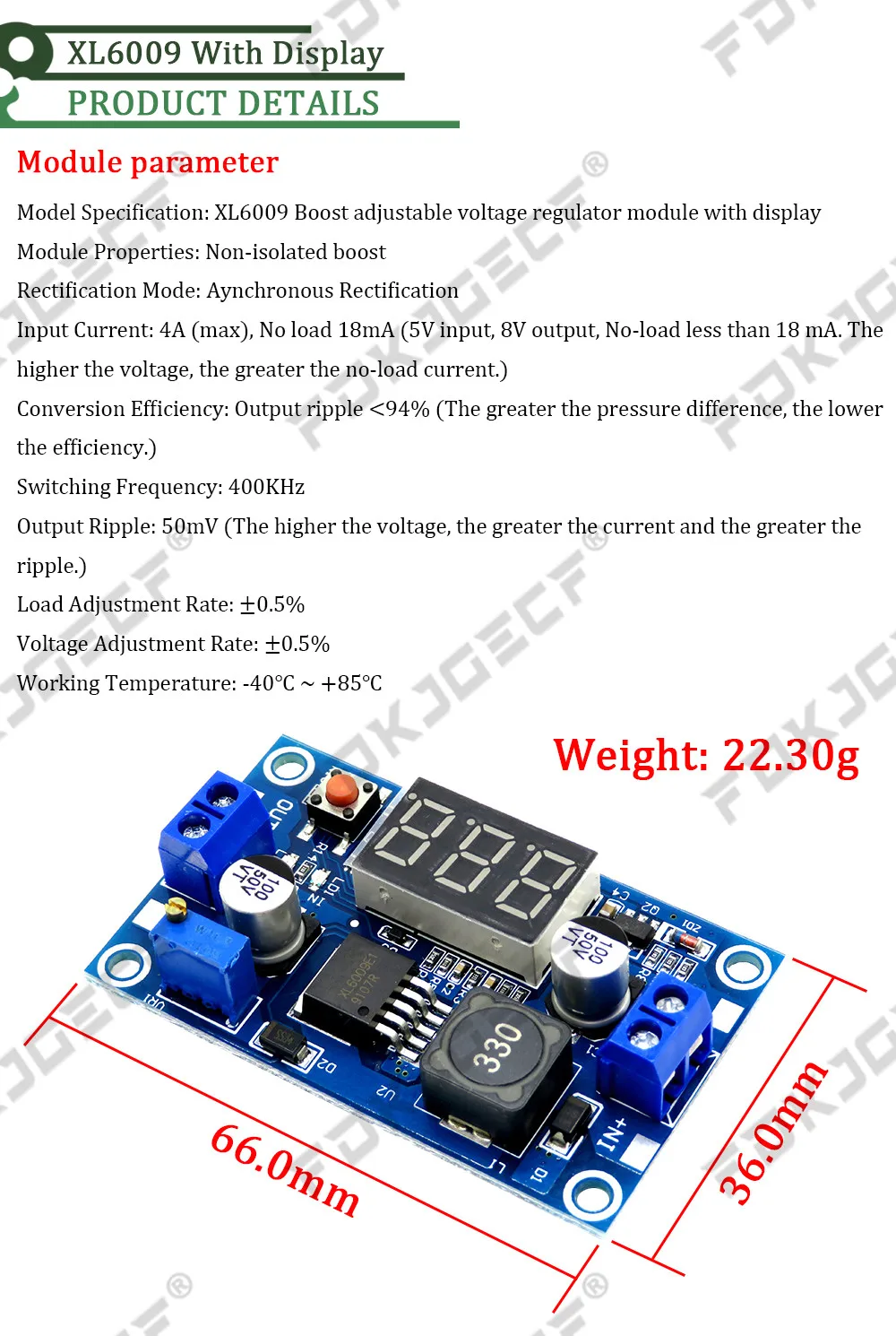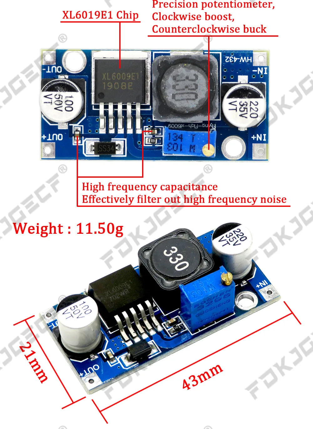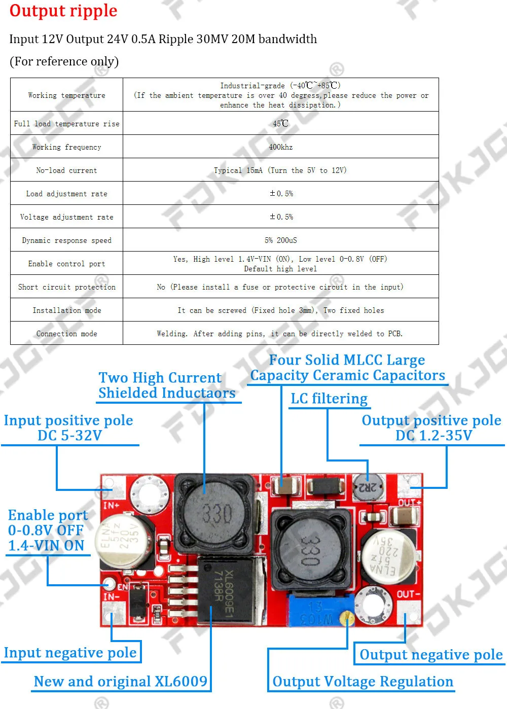 XL6009 4A Boost Converter Step Up Adjustable 15W 5-32V to 5-50V DC-DC Power Supply Module High Performance Low Ripple