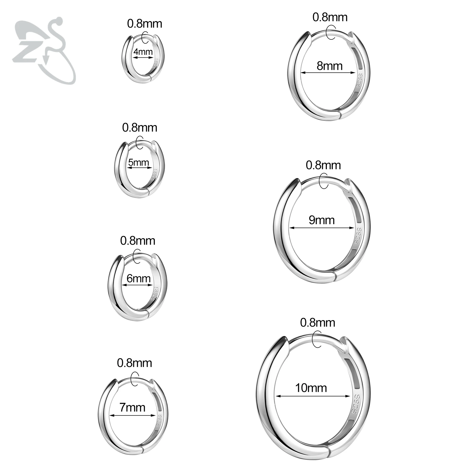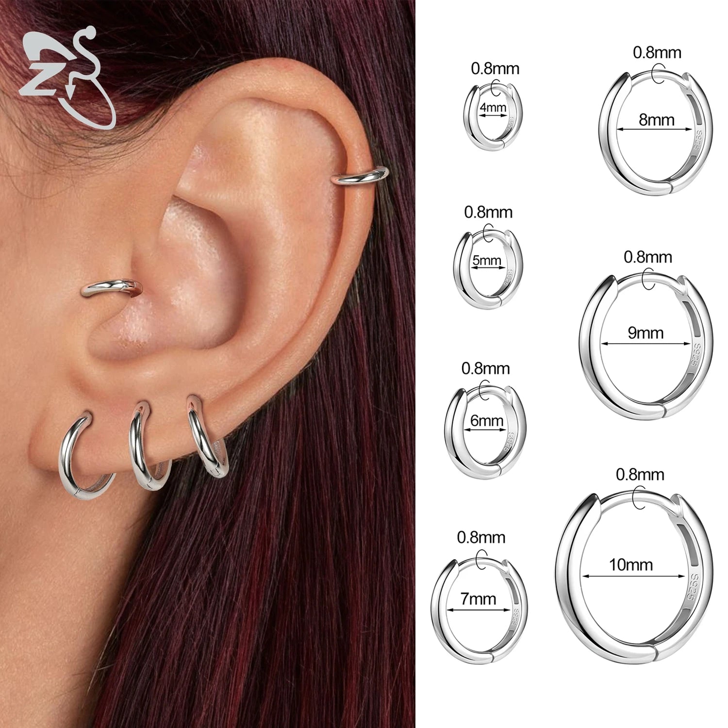 ZS 1 Piece 20G 925 Sterling Silver Hoop Earring For Women Girls 4MM-10MM Round Earrings Helix Cartilage Rook Piercings Jewelry